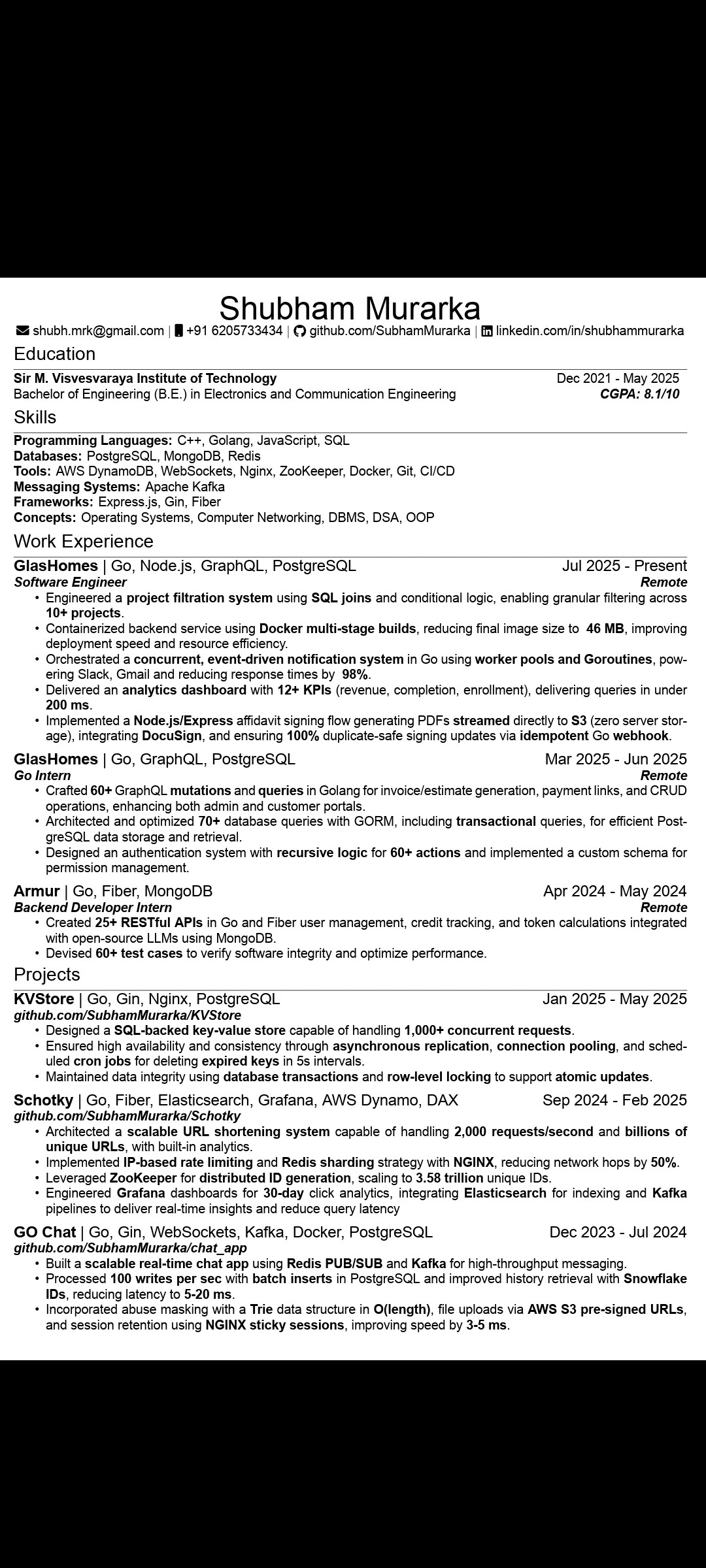 Golang/Backend Dev | Resume Attached | looking for opportunities.